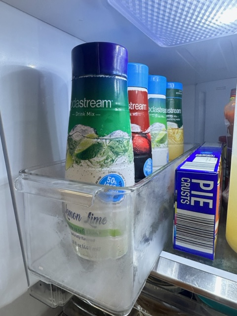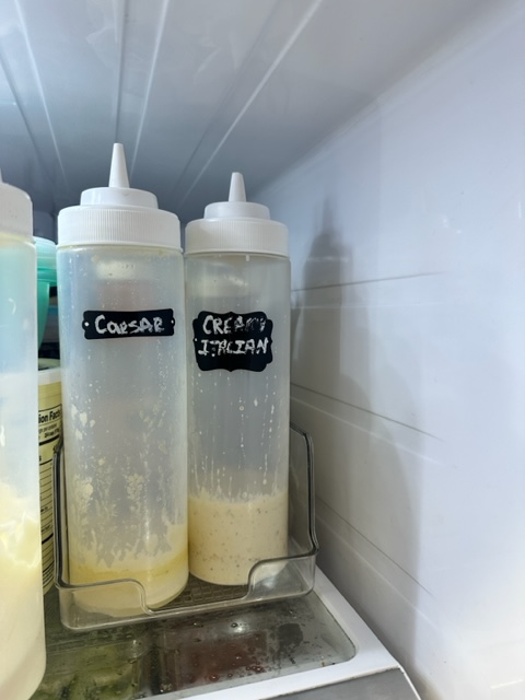 Bins were added for all items we wanted to quickly be able to pull out. Here the Soda Stream Syrups were put in one bin and Salad Dressings were put in the other bin.