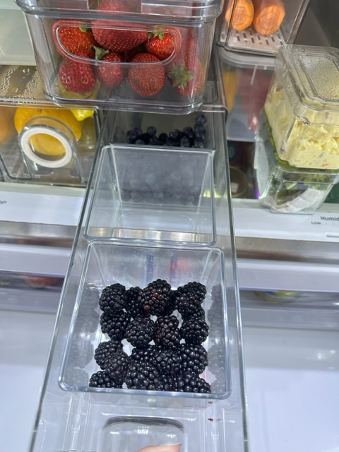 These pull out drawers are absolutely my favorite! Because the drawers pull out, they are easy to open without having to move anything. We now blow through a lot of extra fruit because it’s so easy to grab and go!