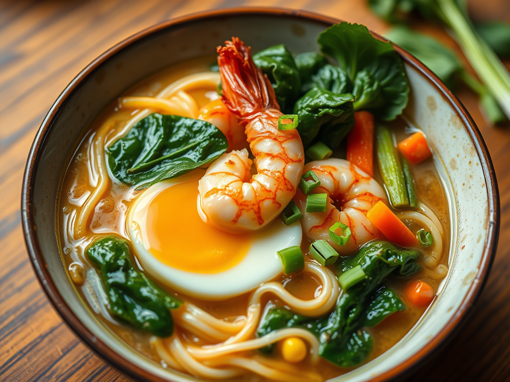 Shrimp Ramen with Egg & Veggies is a cozy, crave-worthy bowl of comfort with a pantry-perfect twist. Rehydrated freeze-dried shrimp bring a pop of ocean flavor, while tender noodles soak up a savory broth laced with soy sauce, sesame, and garlic. A soft egg and colorful veggies like spinach, corn, and green onion round out this nourishing meal. Ready in minutes, it’s a satisfying, slurpable delight that transforms simple ingredients into a restaurant-style ramen experience—right from your kitchen.