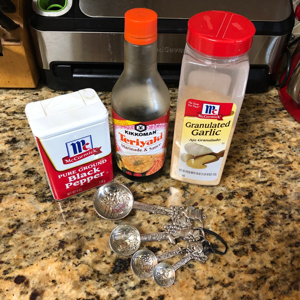 I used Kikkoman Teriyaki Sauce. It’s pretty easy to find in most grocery stores.
