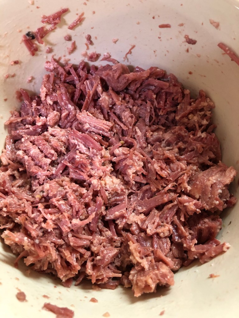 You can use sliced deli corned beef or even leftover corned beef from cooking up a brisket. We used corned beef we had pressure canned earlier in the year.
